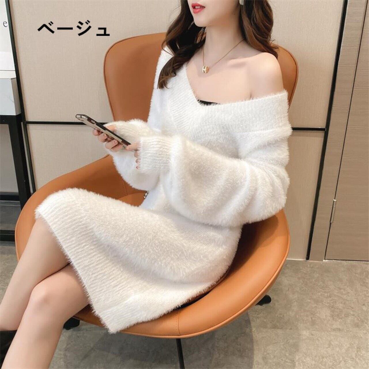 ふわふわで暖かいニットワンピースです。